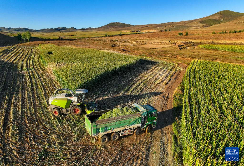 9月的科爾沁草原,秋意漸濃。在內(nèi)蒙古通遼市扎魯特旗巨日合鎮(zhèn),農(nóng)牧民搶抓農(nóng)時,忙著收獲青貯玉米,為牲畜過冬儲備飼草料。新華社記者 連振 攝