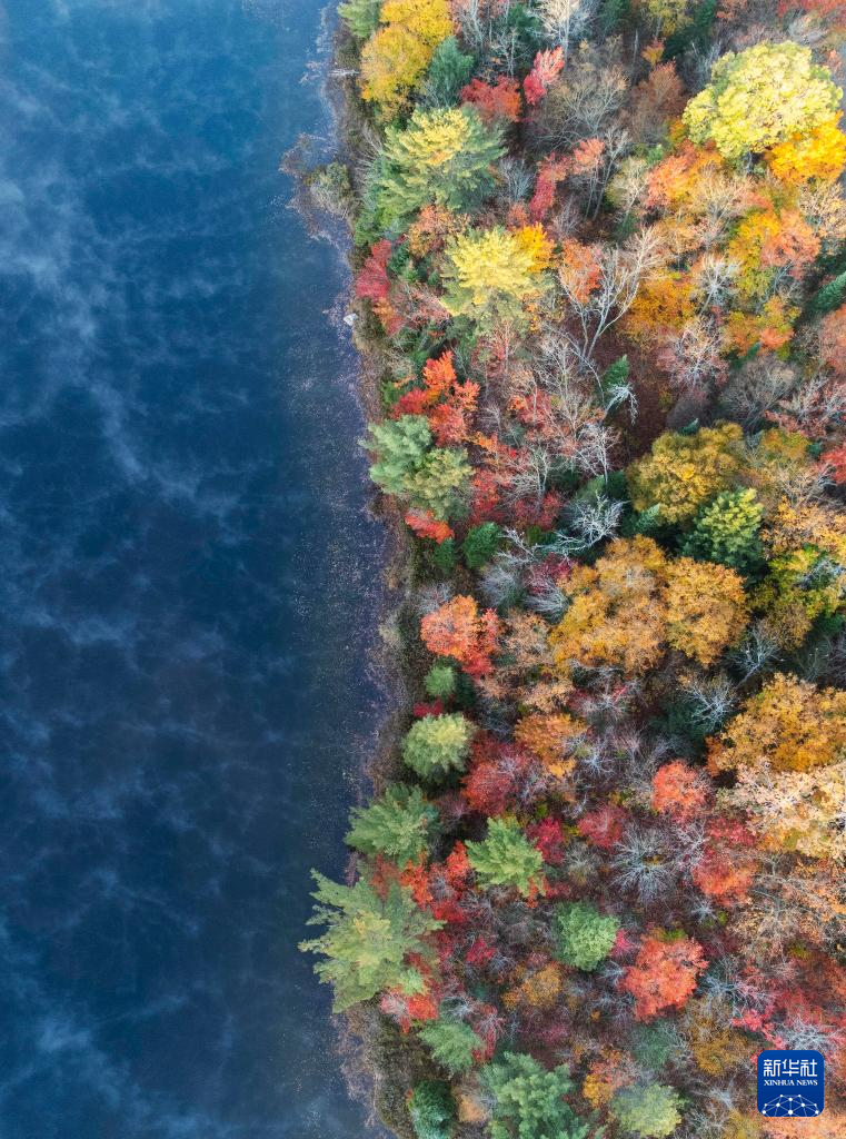 這是10月9日在加拿大安大略省亨茨維爾附近拍攝的秋色(無(wú)人機(jī)照片)。